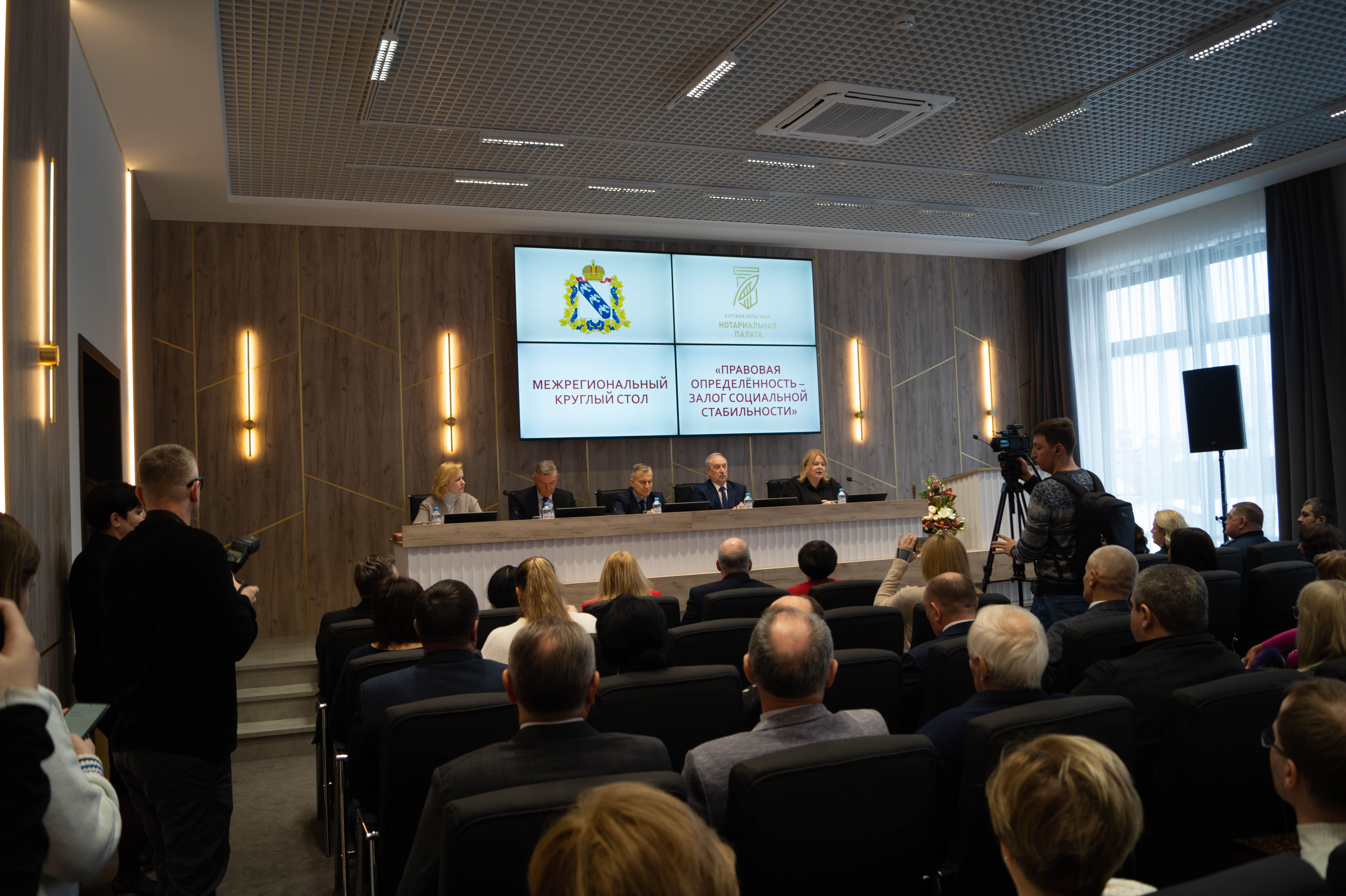 Круглый стол был приурочен к открытию нового здания Курской областной нотариальной палаты. С этим событием нотариусов поздравил губернатор Курской области Александр Хинштейн«Старое [здание] было гораздо меньше и не вмещало главной ценности нотариусов — архива, который ведет свой отсчет с 1940-х гг. Новое здание построено без привлечения бюджета, здесь разместятся программисты, юристы, бухгалтерия. Каждый житель области может получить здесь архивные документы», — отметил он. При этом бесплатная юридическая помощь, которой посвящено первое масштабное мероприятие в стенах нового дома курского нотариата, безусловно, является значимой темой, и, как подчеркнул глава региона, «в сегодняшних условиях она крайне важна для жителей приграничья».